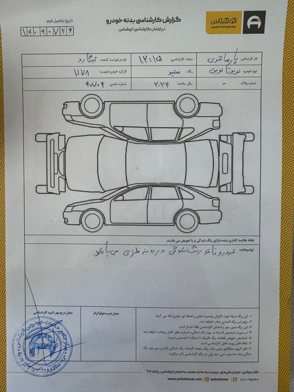 • وضعیت بدنه بدون رنگ شدگی و آسیب دیدگی